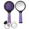 Escova 3 em 1. Com espelho e Porta-treco no cabo. Ideal para desembaraçar os cabelos. Suas cerdas possuem pontas de plástico arredondadas que oferecem uma agradável massagem no couro cabeludo enquanto penteia e desembaraça os fios.