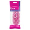 A esponja de banho dupla face Ricca tem duas texturas diferentes. Com o seu lado macio, limpa suavemente. Com sua face esfoliante estimula a renovação celular, melhorando a aparência e deixando a textura da pele mais homogênea, além de ativar a circulação sanguínea. Por remover o excesso de sebo acumulado nos poros, a esfoliação também ajuda na prevenção de cravos e espinhas.