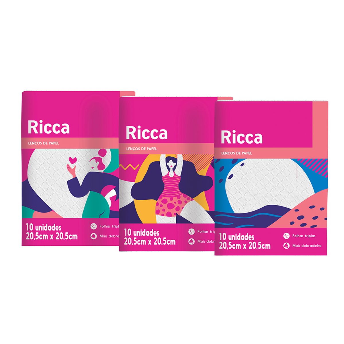 Lenços de papel mini Ricca para limpeza geral. São os parceiros ideais para não deixar que imprevistos atrapalhem seu dia ou estraguem sua festa!